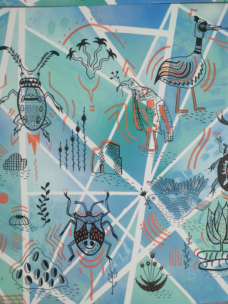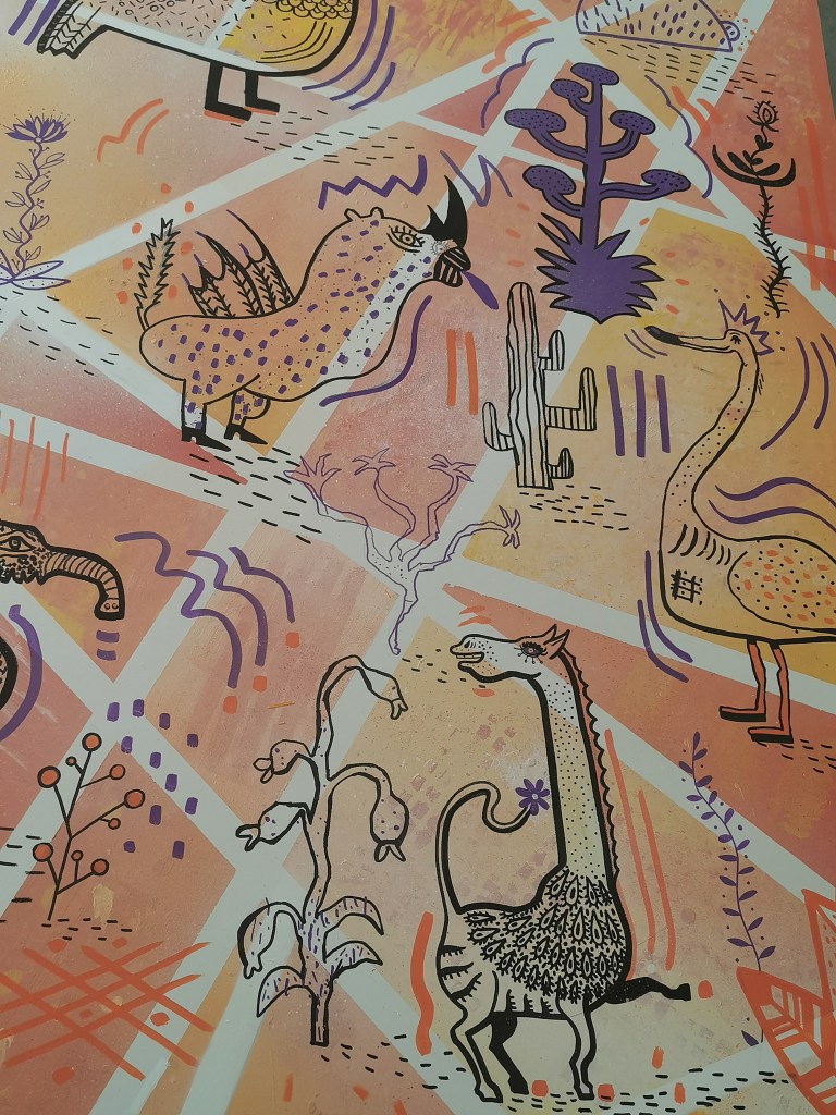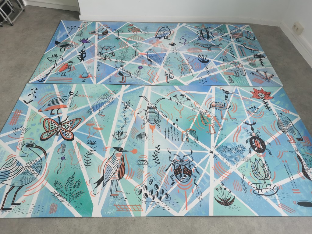 Nous avons réalisé ensemble, sur de grands panneaux, une fresque qui représente les animaux imaginaire du BEMPT.