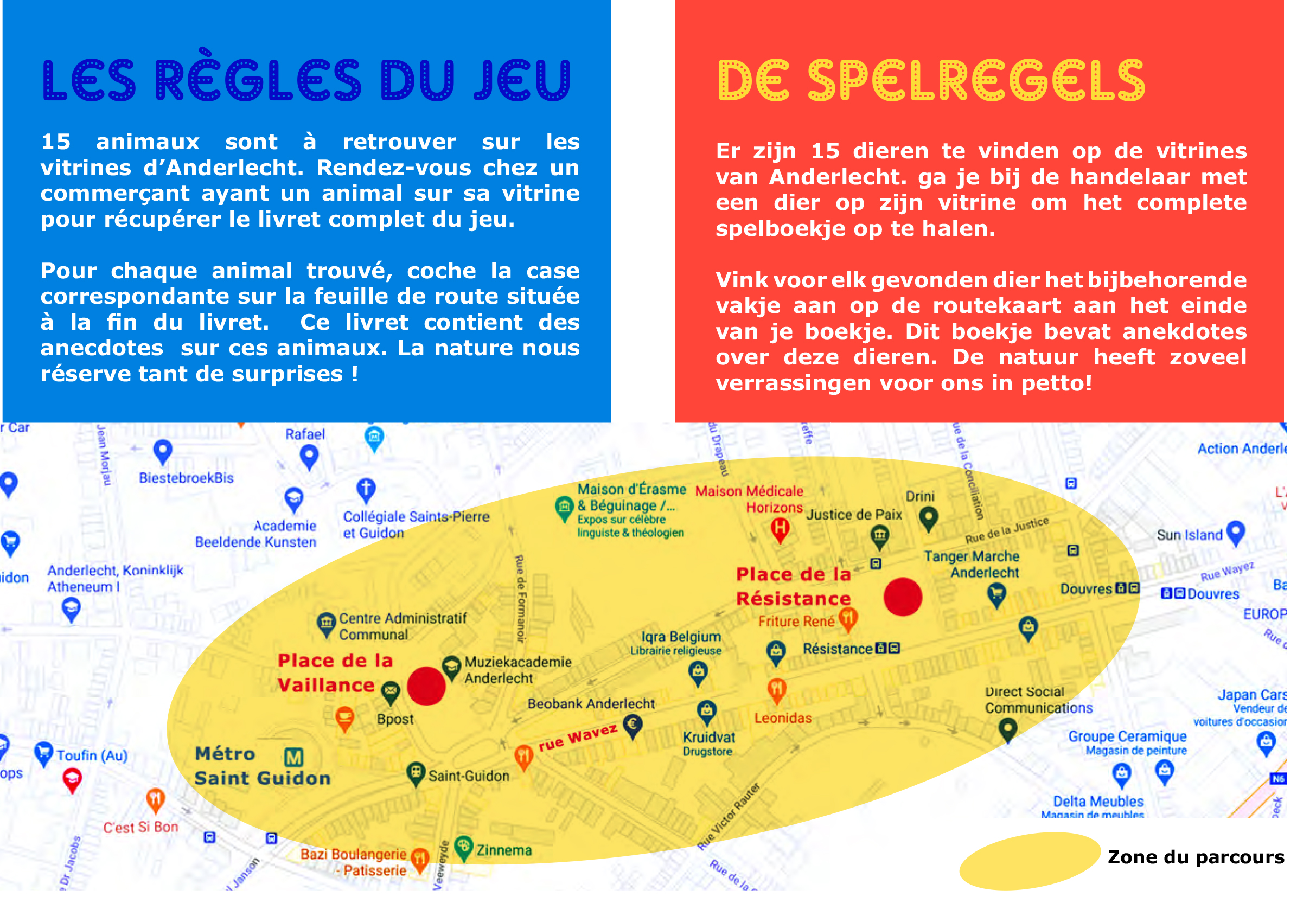 Ce projet permet d’apporter de la «lumière» et un esprit de fêtes aux rues commerçantes d’Anderlecht. Ce jeu de piste urbain est accompagné d’un carnet d’indices, le but étant de créer de l’animation et de rassembler à la fin d’une année compliquée pour tou.te.s.
