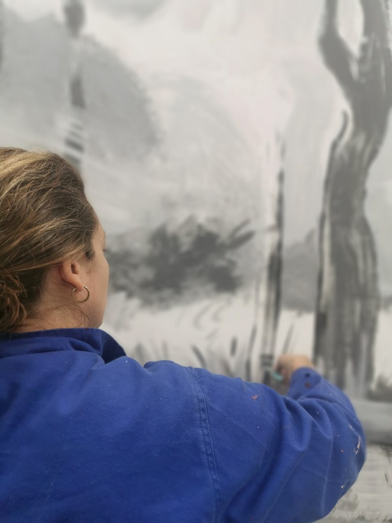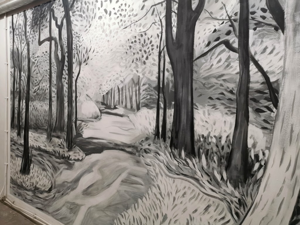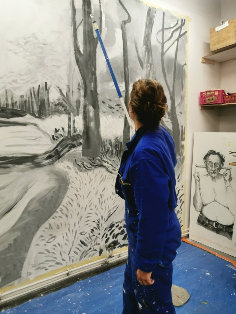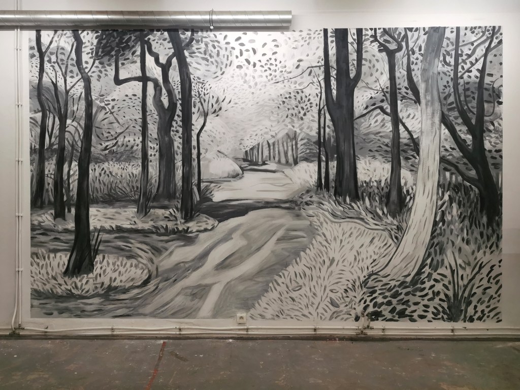 Réalisée en atelier d’après un dessin de David Hockney “Woldgate, 26-27 June”, 2012, Charcoal on paper, 26 1/8 x 40 1/4 in