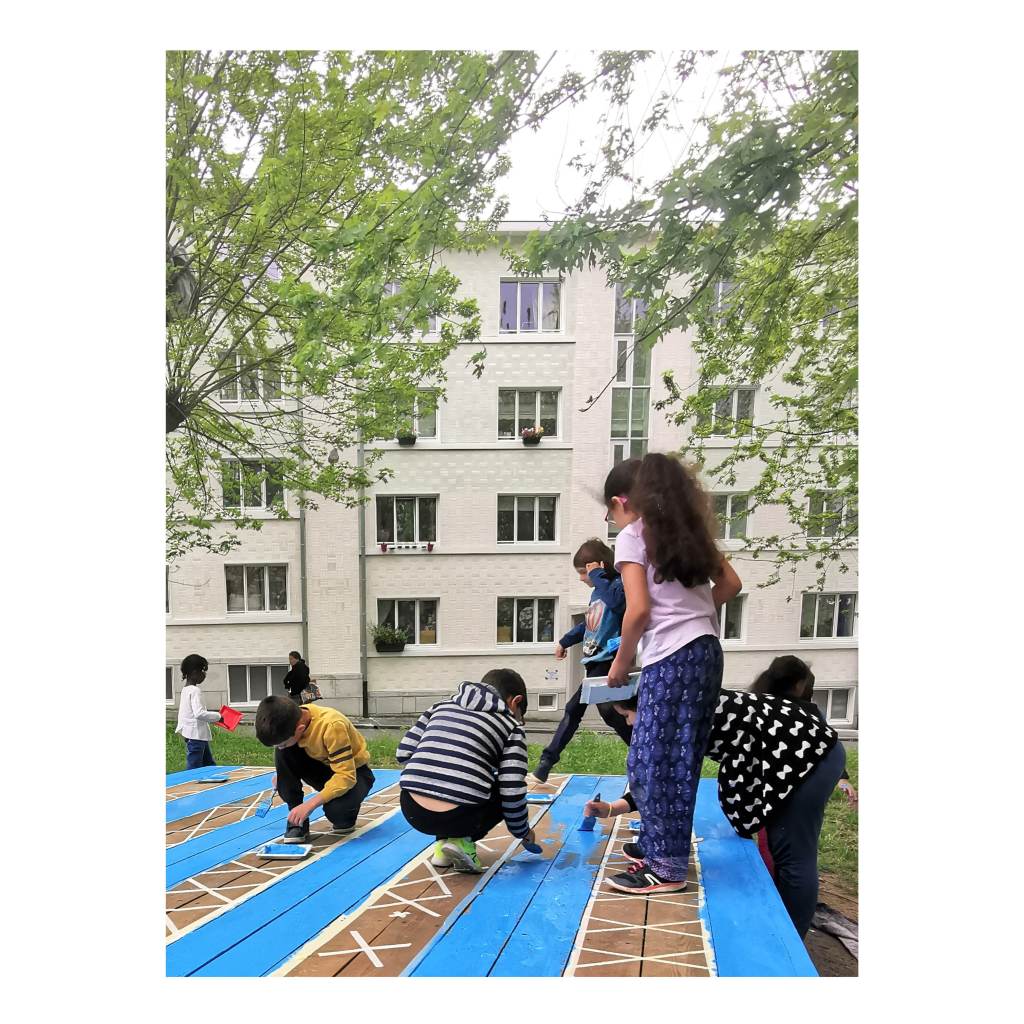Toujours dans la continuité de la rénovation du quartier du Bempt à Forest, nous avons décoré le mobilier conçu et réalisé avec les habitants.es par le collectif Fabrik (www.fabrikfabrik.be). Ce fût de belles journées avec les enfants et les adolescents à avancer tous.tes ensemble!