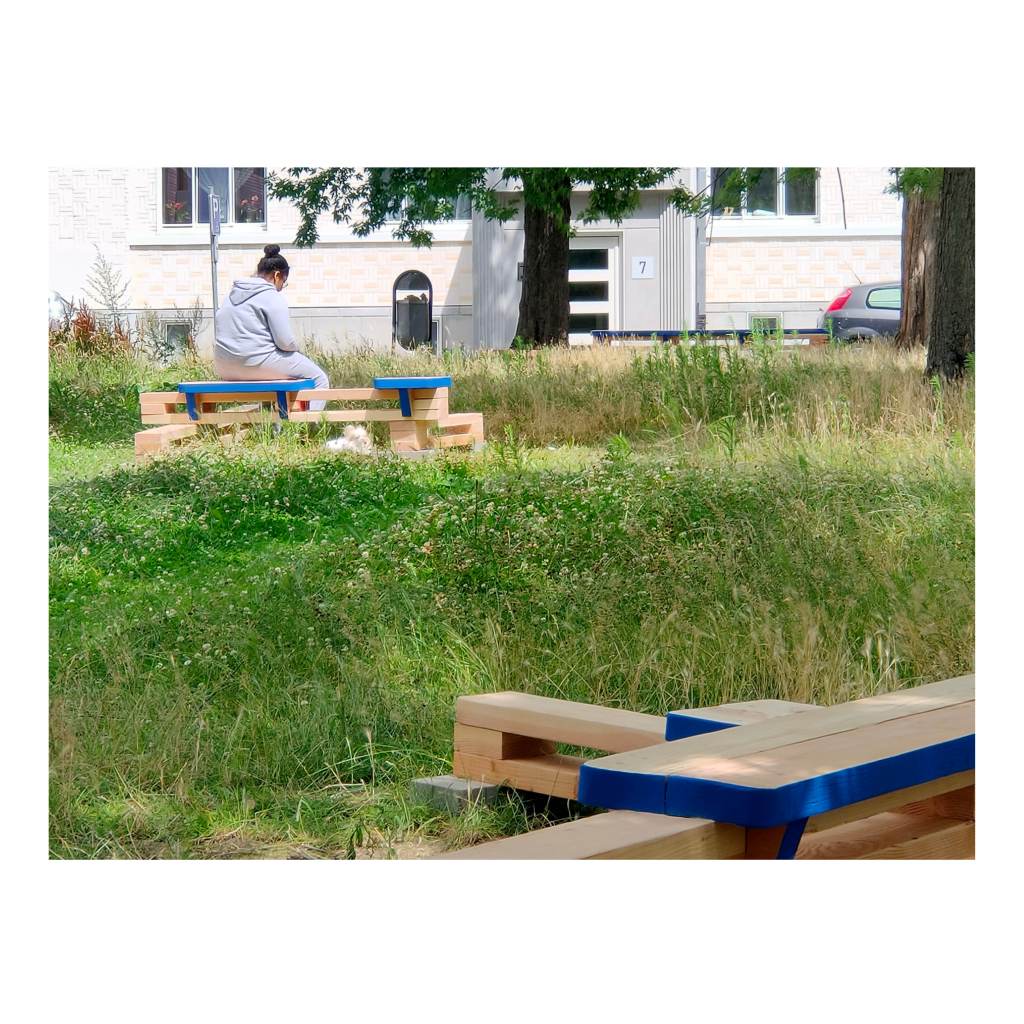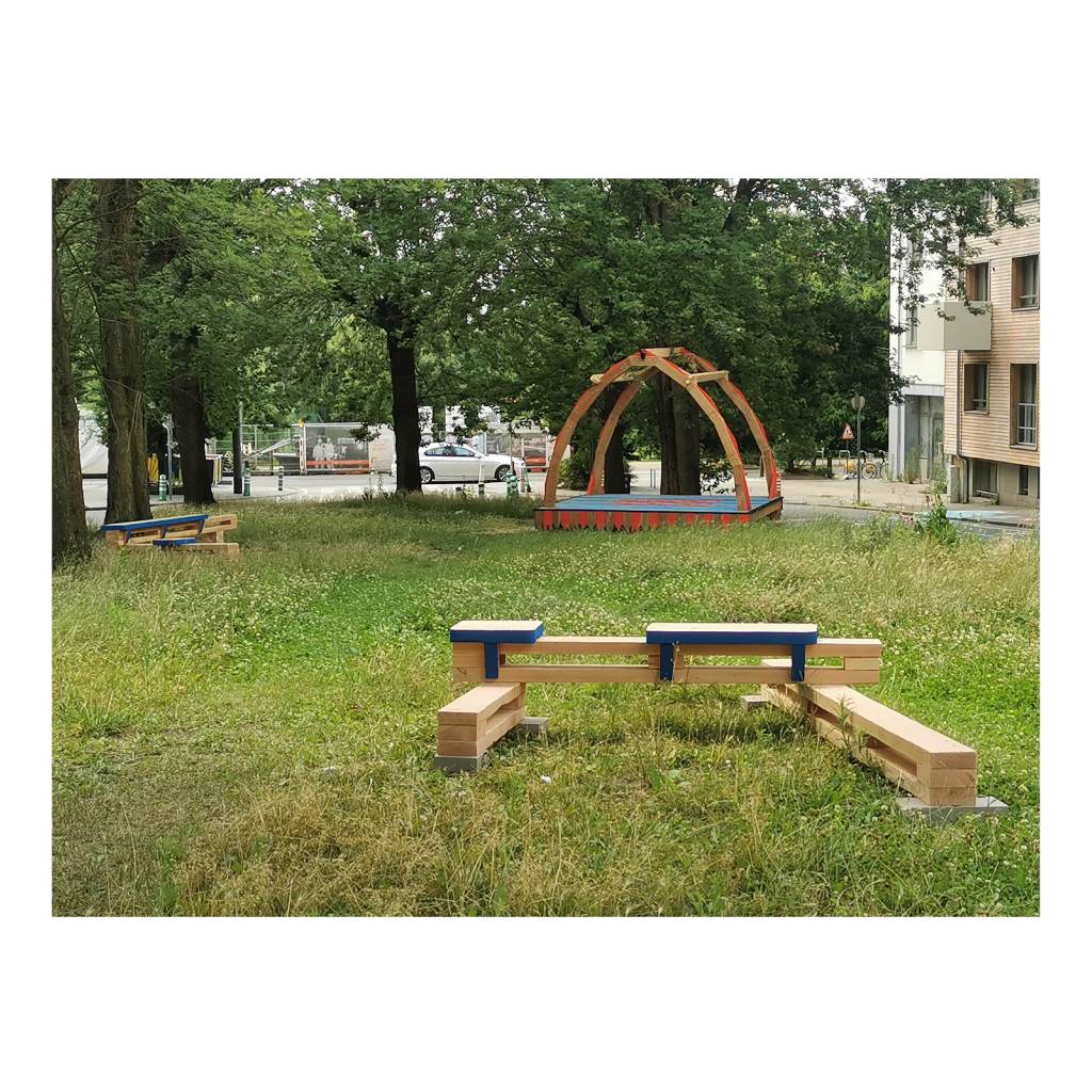- Les bancs, répartis dans le square, forment des petits espaces paisibles où les habitants peuvent se rencontrer, échanger ou encore se reposer.