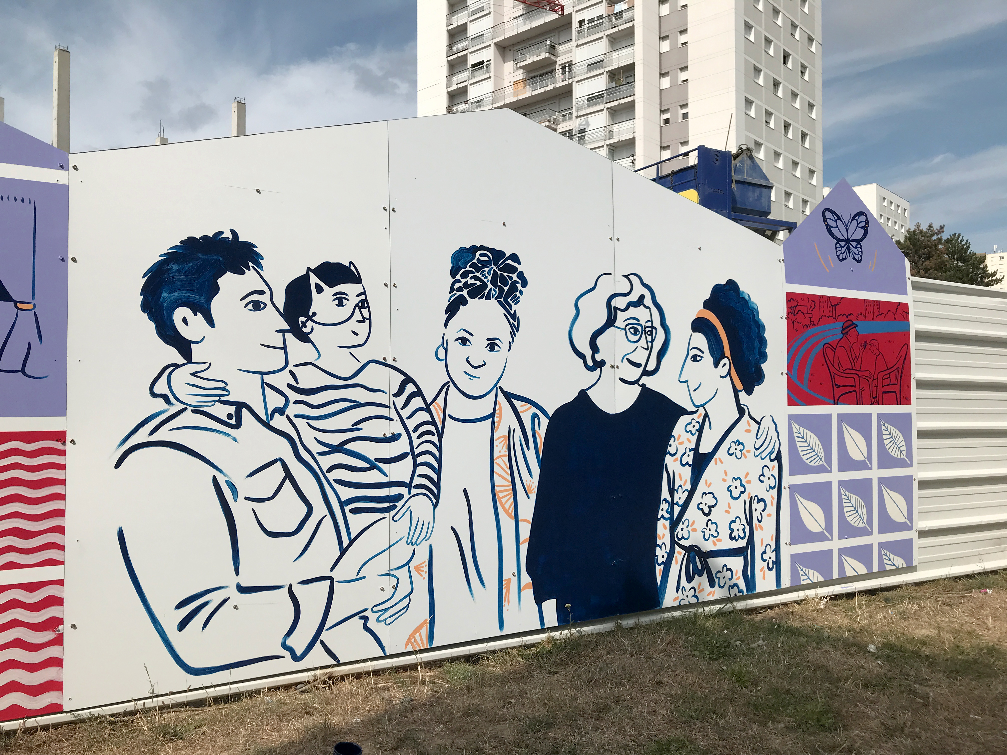 Ce projet participatif, lancé par la ville @rennesvilleetmetropole et Territoires Rennes propose de décorer avec les habitant.e.s du quartier, les palissades de chantier derrière lesquelles se construisent le pôle de santé, les commerces et la halle multifonction sur la Place Jean Normand dans le quartier du Blosne à Rennes.