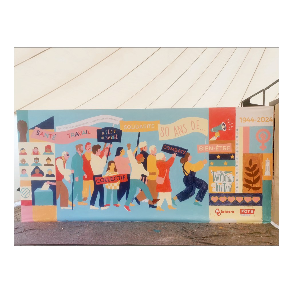Dans le cadre du Festival des Solidarités à Namur, nous avons eu le plaisir de contribuer à la scénographie de la Casa, en collaboration avec Solidaris et la FGTB Wallonne, pour célébrer les 80 ans de la sécurité sociale belge. Cet anniversaire a été l’occasion de mettre en avant l’histoire ainsi que les valeurs de solidarité et d’entraide, au cœur de notre système de protection sociale, un système qui unit, protège et garantit un avenir plus juste et équitable pour tous.