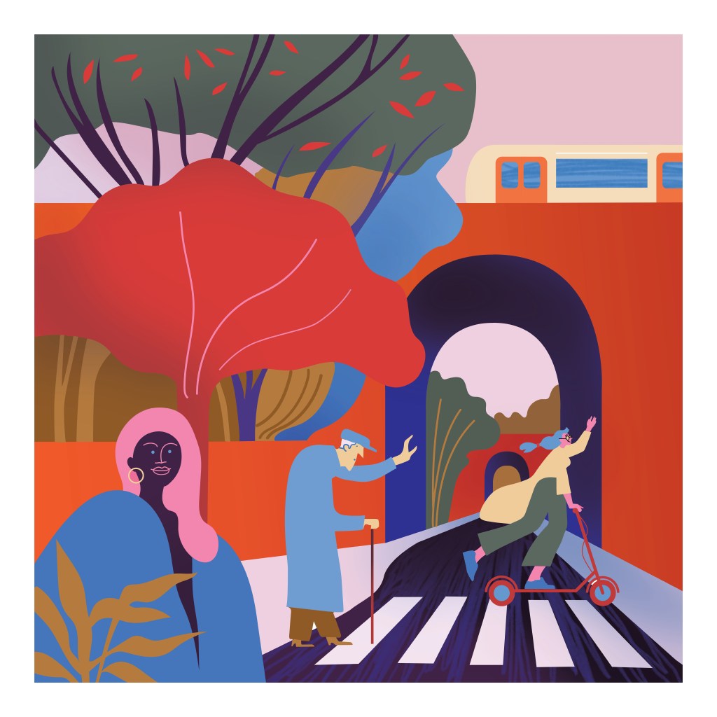 À l’occasion du 30e anniversaire de Beliris, notre collaboration avec @visitbrussels a donné naissance à quatre illustrations explorant les dynamiques de déplacement, les interactions humaines et les solutions de transport qui façonnent la vie des habitants d’Ixelles. Ces œuvres reflètent la diversité et l’importance de la mobilité dans le quotidien, mettant en lumière les interventions de Beliris au cours des dernières années au sein de la commune.