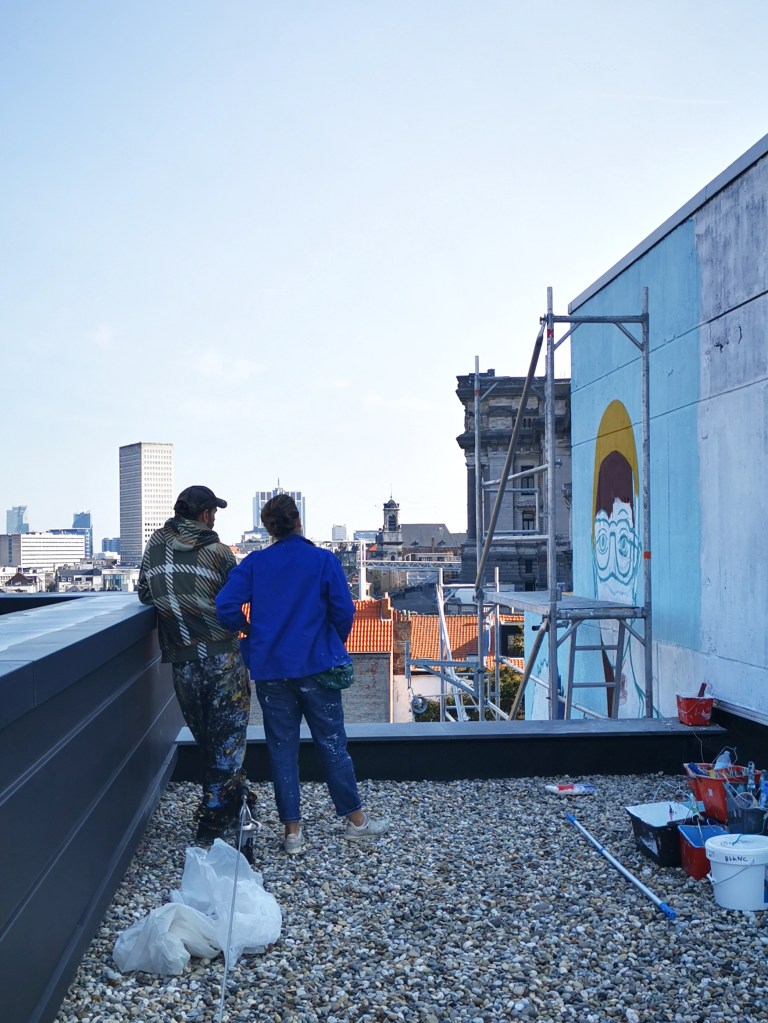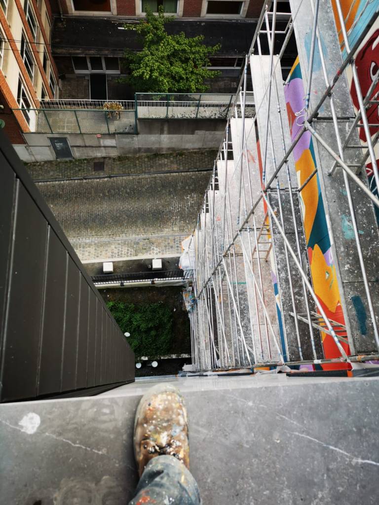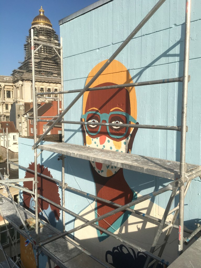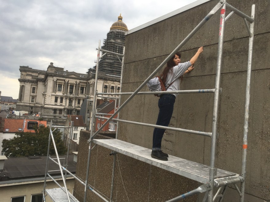 Work in progress Images du chantier sur le mur du CPAS, rue de l’Abricotier, 7 Bruxelles credit : céleste